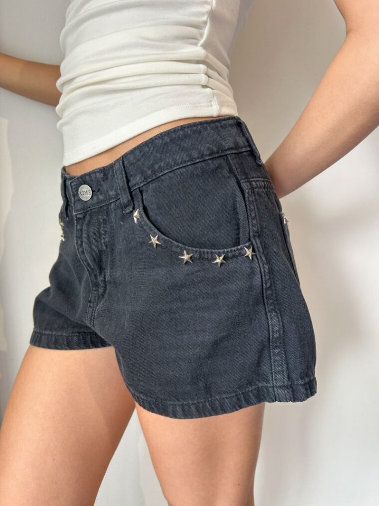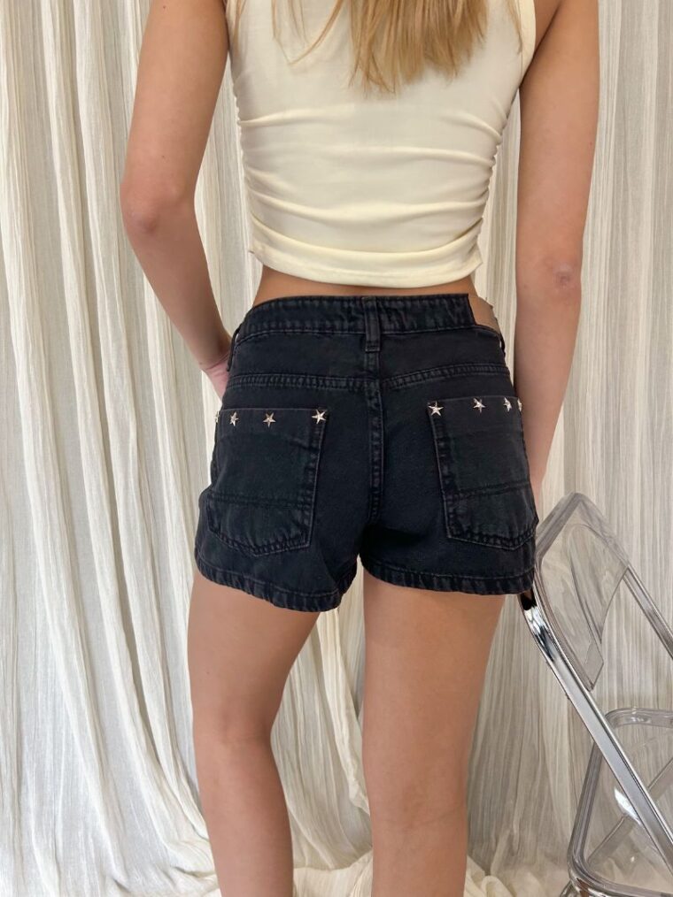 Descripción: Short jean c/boton y tachas estrella negro tiro bajo