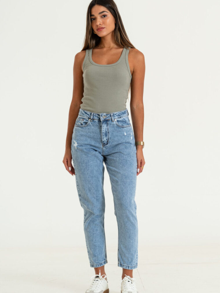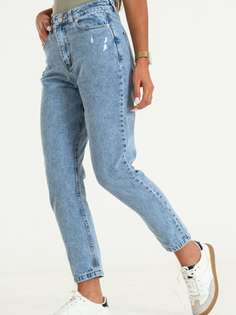 Descripción: Jean mom celeste c/ roturas