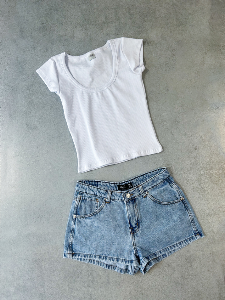 Descripción: Short tiro bajo celeste