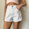 Descripción: Short De Jean Blanco Tiro Alto C/Dobladillo