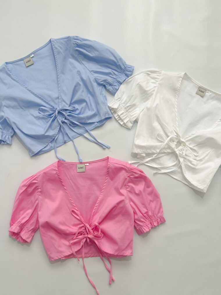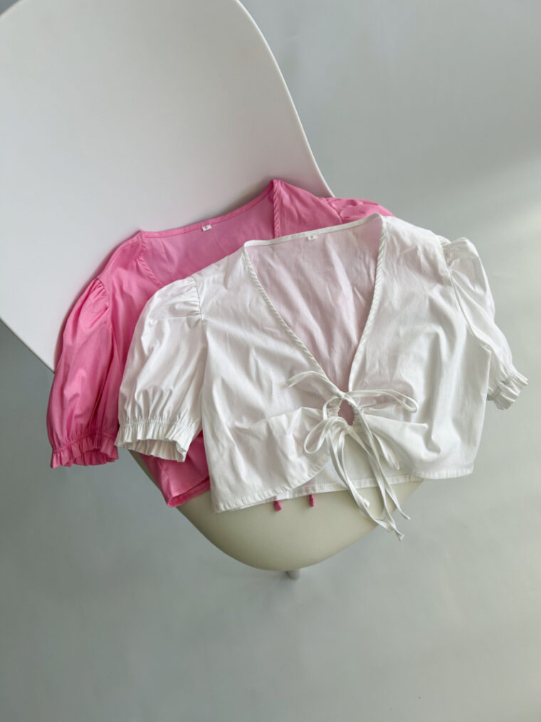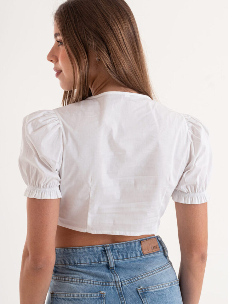 Descripción : Blusa corta fruncida con tiras y manga princesa