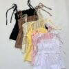 Descripción : Musculosa fruncida con tiritas bretel para atar