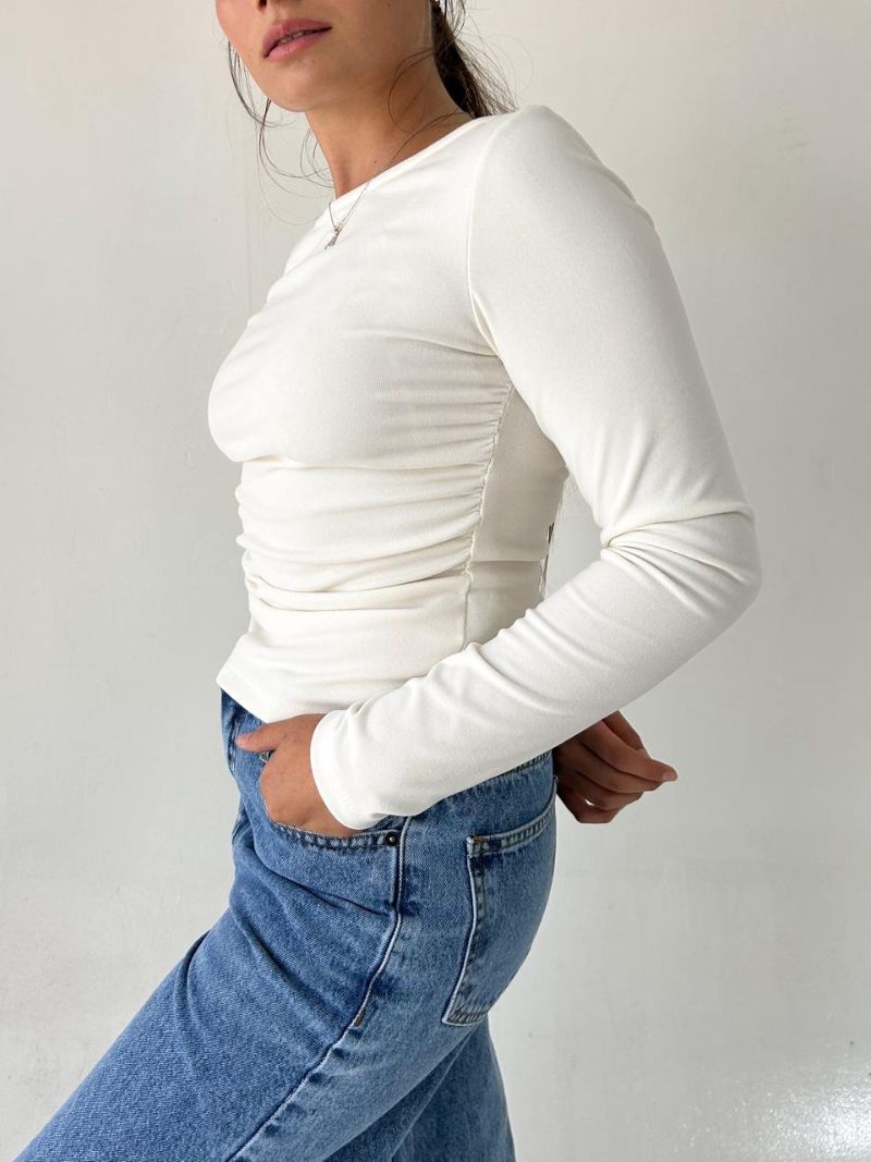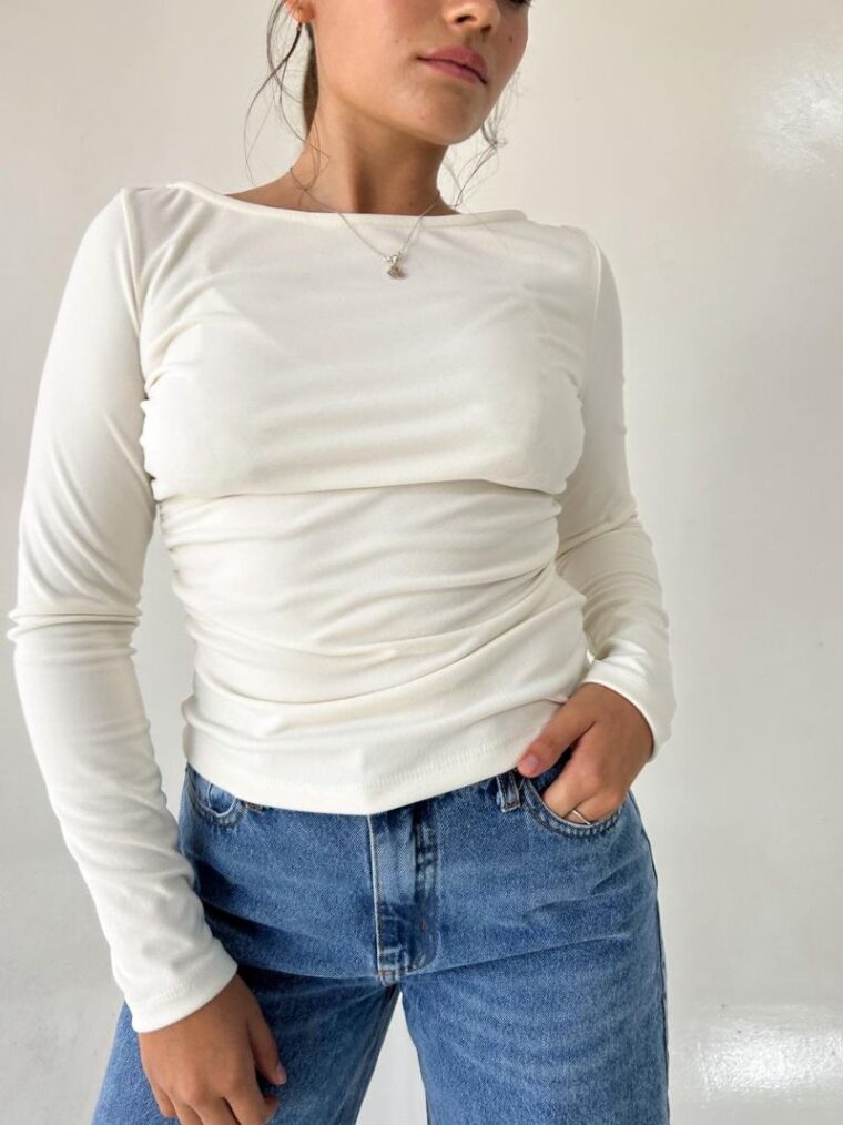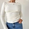 Descripción : Remera m/l cuello bote y fruncido laniila Ribb