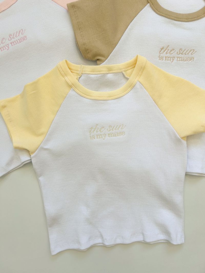 DescripciónTop m/c bicolor bordado “The Sun is my muse”