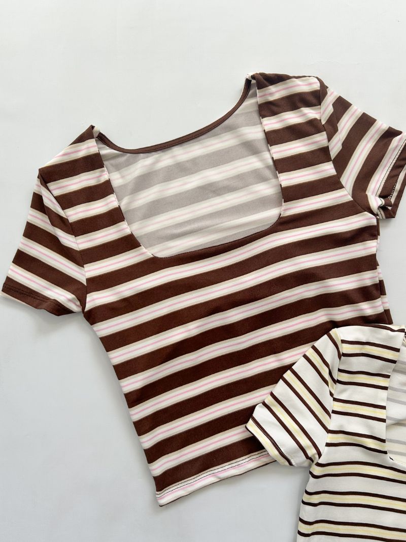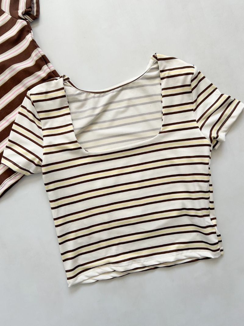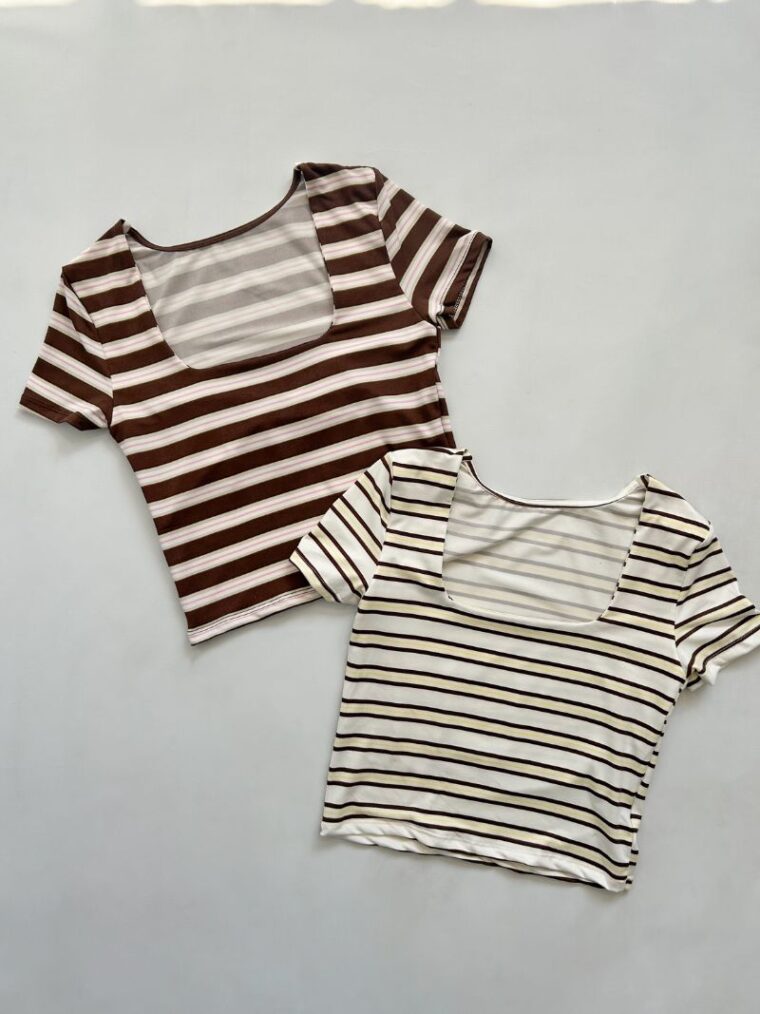 Descripción: Top m/c escote cuadrado rayado modal soft