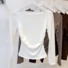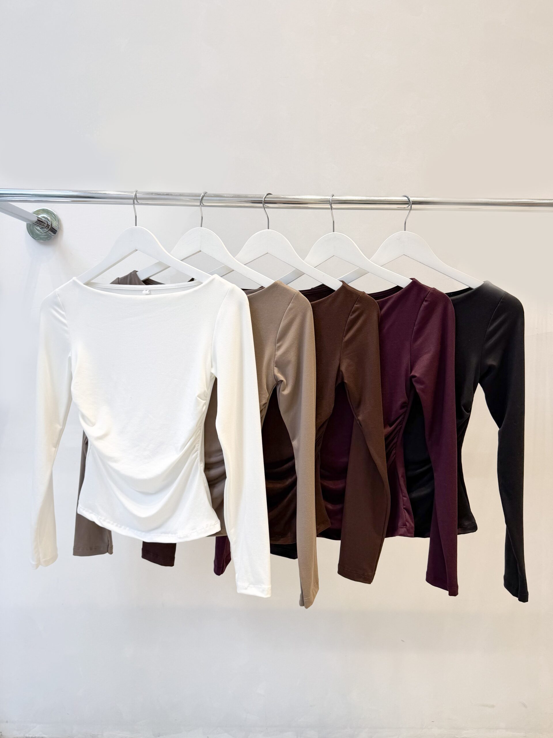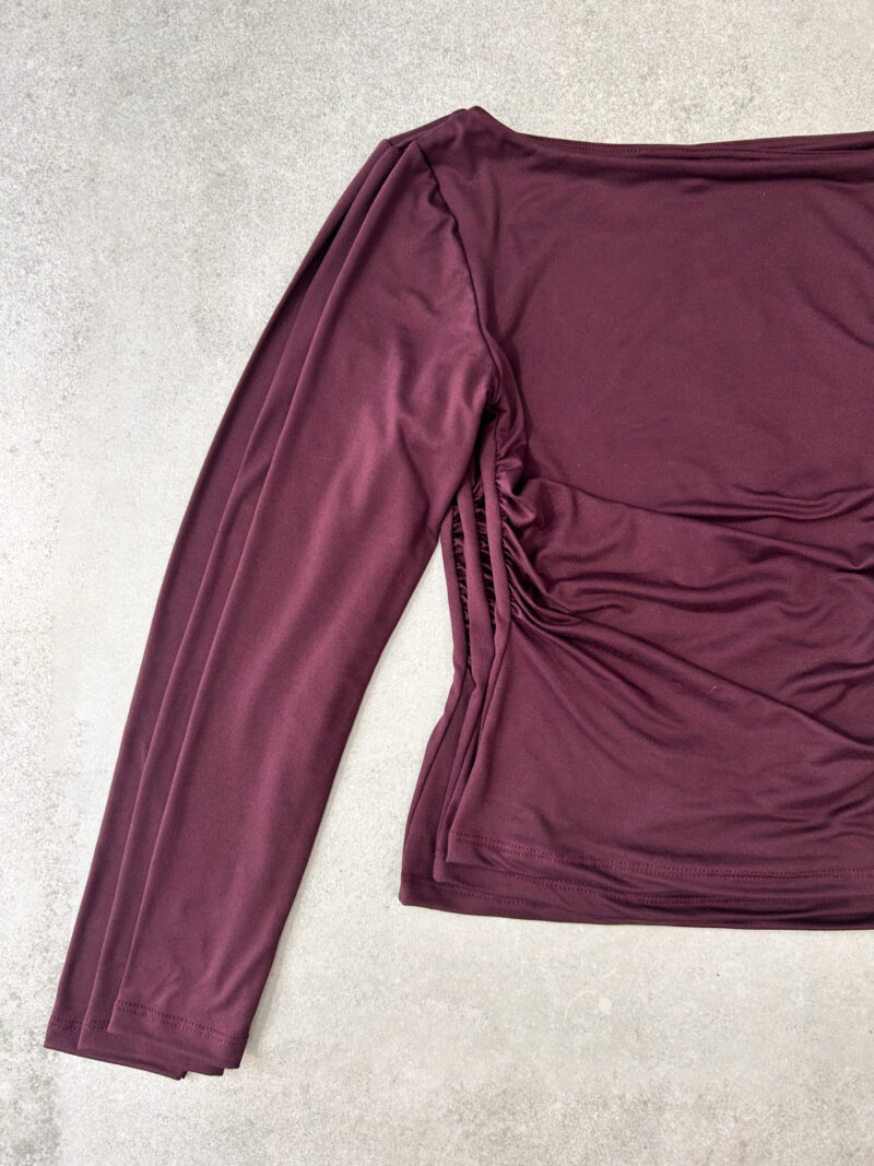 Descripción: Remera manga larga cuello bote con frunces laterales adelante